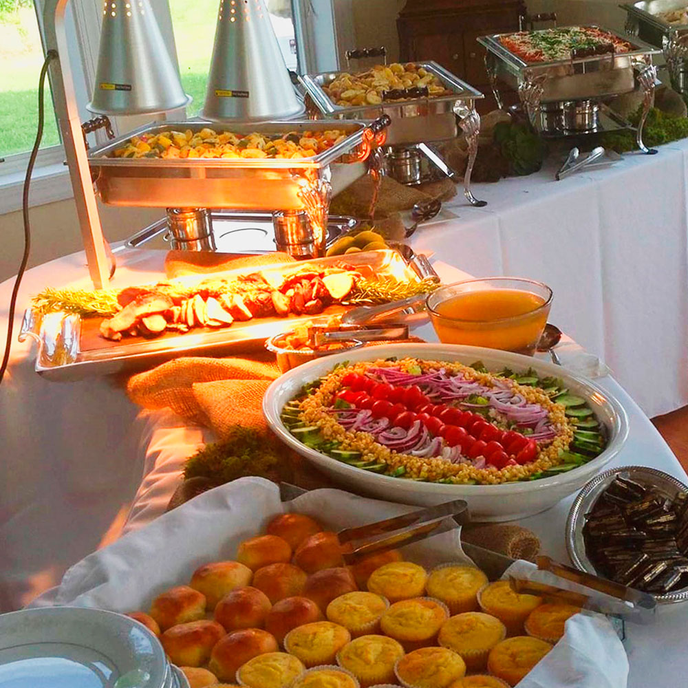 Montajes de bufett con chafing rechaud a la vista de los invitados