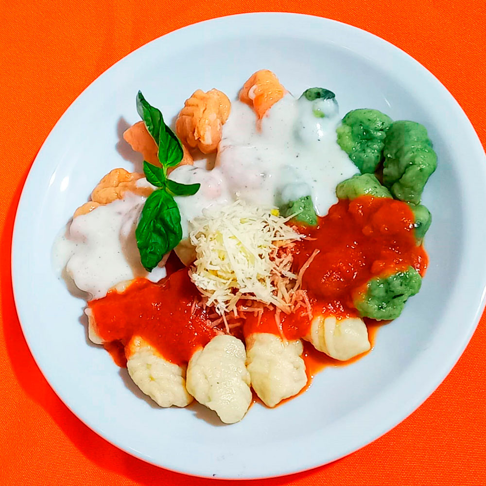 Salsas: Bolognesa, crema, estofado de pollo, cuatro quesos, pesto, Crema de verdeo